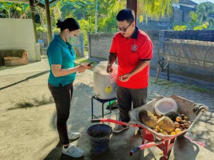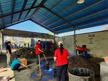 Eco-Enzyme – sampah organik berupa kulit buah dan sayuran difermentasi menjadi cairan serbaguna. Produk eco-enzyme ini bisa digunakan sebagai pembersih alami, pupuk cair, hingga penghilang bau, sehingga memiliki nilai tambah dan manfaat luas bagi masyarakat.