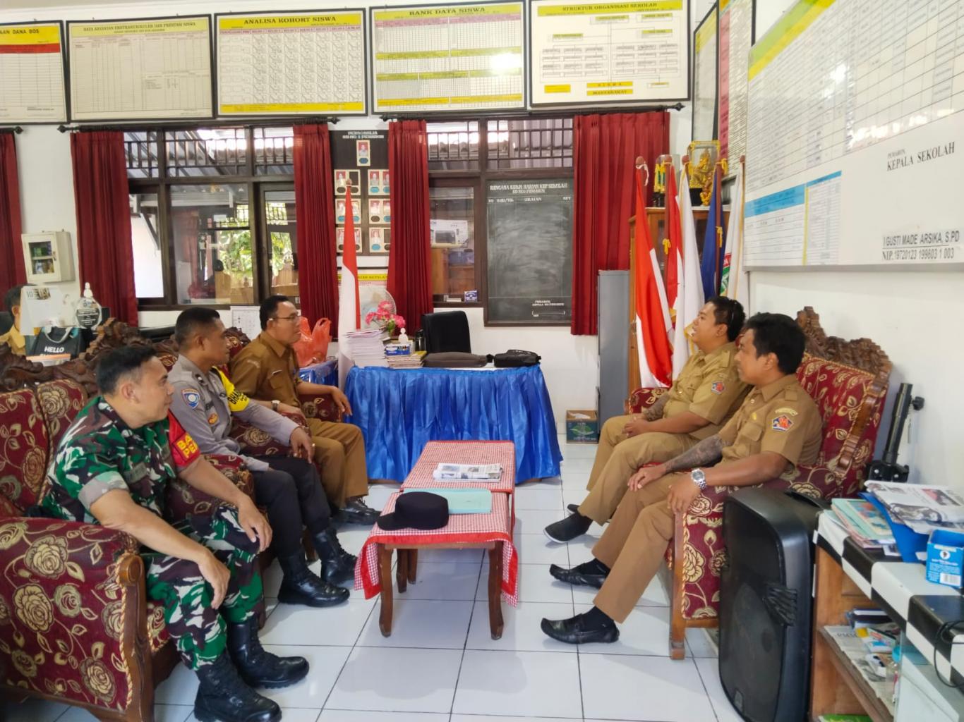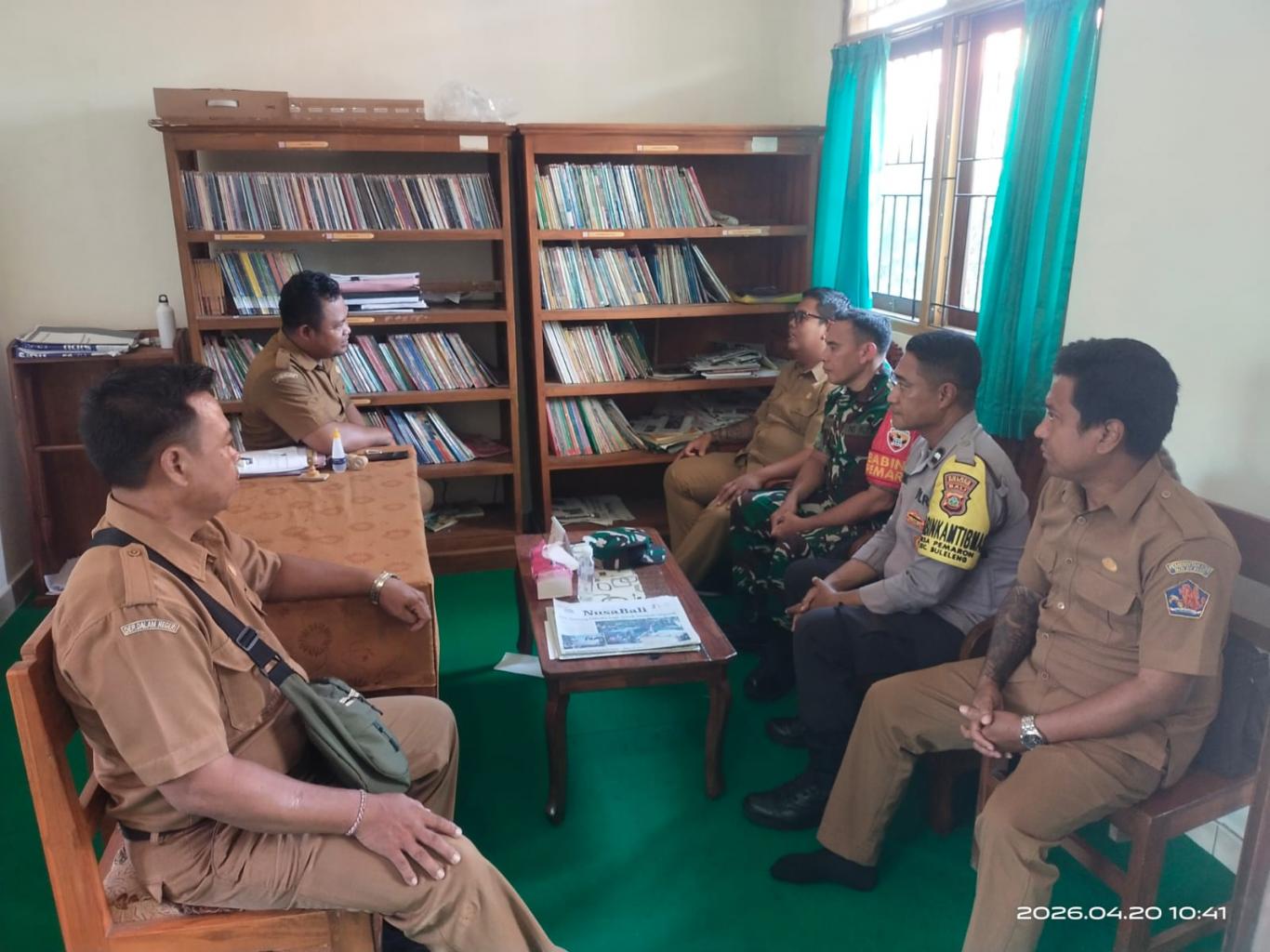 Sekretaris Desa bersama dua pilar kewilayahan, Kelian Banjar Dinas Dangin Margi dan Kelian Banjar Dinas Dauh Margi, yang menjadi ujung tombak komunikasi dengan warga serta Babinsa dan Bhabinkamtibmas Desa Pemaron. Kehadiran TNI-Polri di tengah-tengah perangkat desa ini menegaskan bahwa urusan sampah bukan sekadar masalah kebersihan, melainkan isu ketertiban dan ketahanan lingkungan yang harus dijaga bersama.